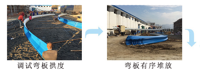 3.施工現場要在建筑旁留有一定空地(其面積視工程大小而定)作為放自動滾壓機車拖車制作拱板和堆放成型后的拱板用地,當屋面跨度較大時吊車設在室內吊裝,因此施工要在山墻處留出入口。具體施工方案與土建施工單位協商確定。