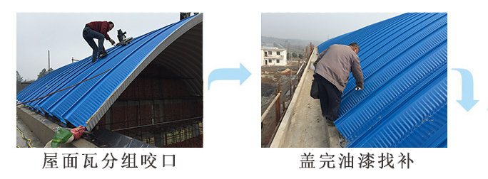 2.土建工程施工到檐口上皮標高時,應按拱形屋頂構造要求準確留出所有埋件,下一工序轉交杰達鋼構施工人員進入工地進行拱形彩板安裝,待做完通風、采光及噴涂室內保溫層后即可退出現場。