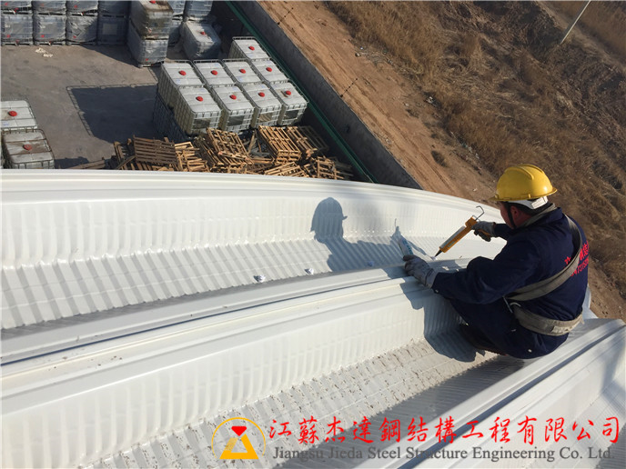 工程名稱:山東濰坊化工廠拱形屋頂翻新項(xiàng)目