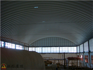 拱形屋面結構是采用國際先進的配套設備,一般0.61.5㎜厚專用914寬度彩涂成卷鋼板為原料,經過壓板、鎖邊、吊裝后成型的大跨度屋面結構。它設計施工周短、投資少、施工快,廣泛適用于混凝土攪拌站料棚、工業(yè)廠房、倉儲庫房、車庫、機庫等。