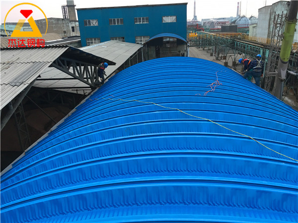 江西鷹潭市貴溪冶煉廠的罩棚工程是一項(xiàng)鋼結(jié)構(gòu)拱形屋頂建設(shè)項(xiàng)目,體現(xiàn)了結(jié)構(gòu)設(shè)計(jì)與施工的緊密配合,保障了廠區(qū)的實(shí)用功能與安全性。
